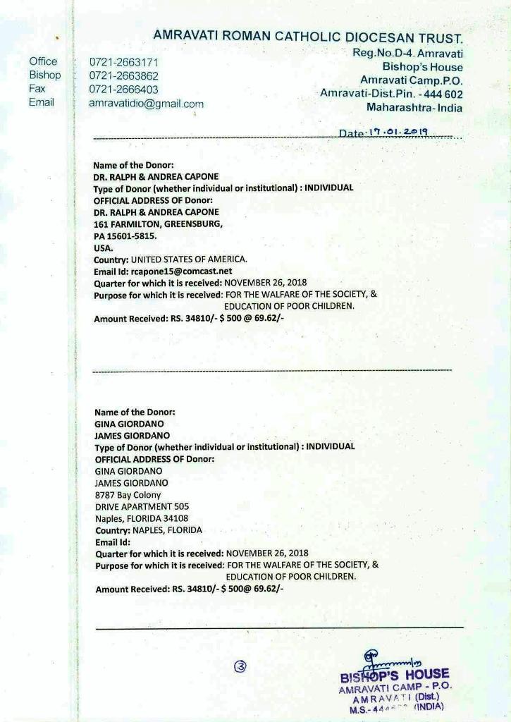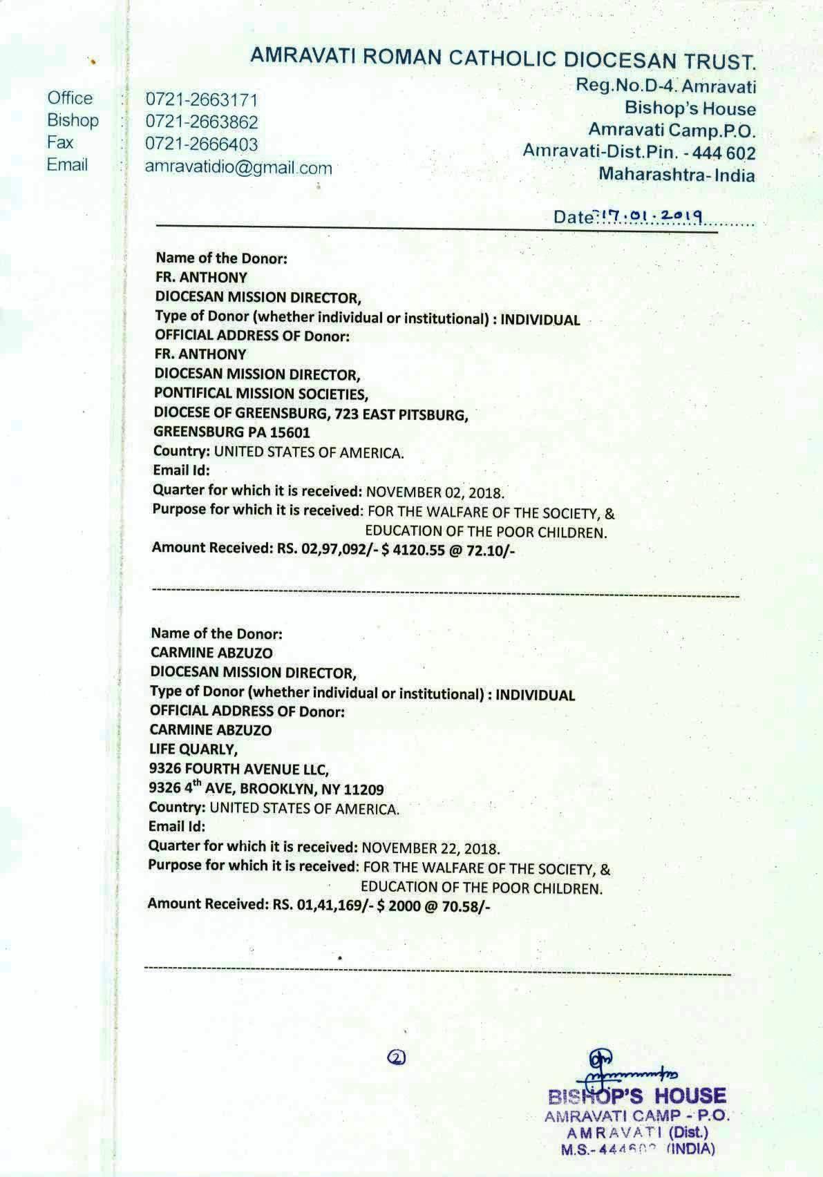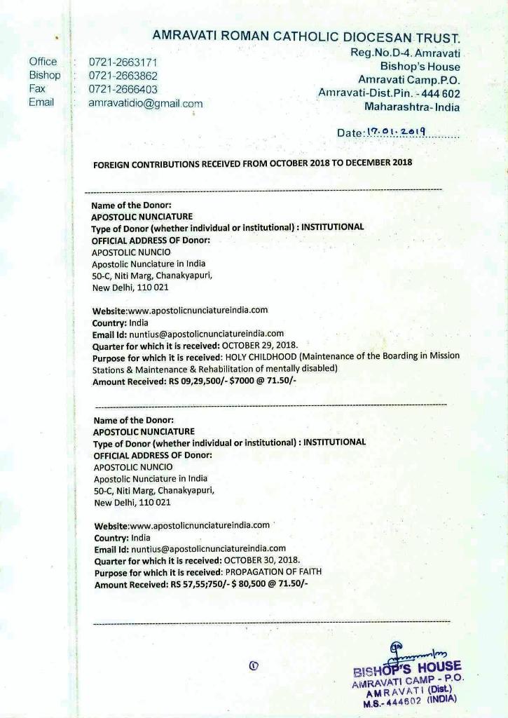 FOREIGN CONTRIBUTIONS RECEIVED FROM