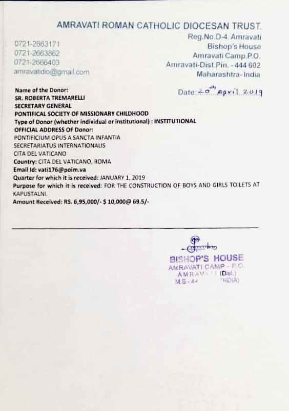 Foreign Contribution Account Id. No. 083740008 31st March 2019 |