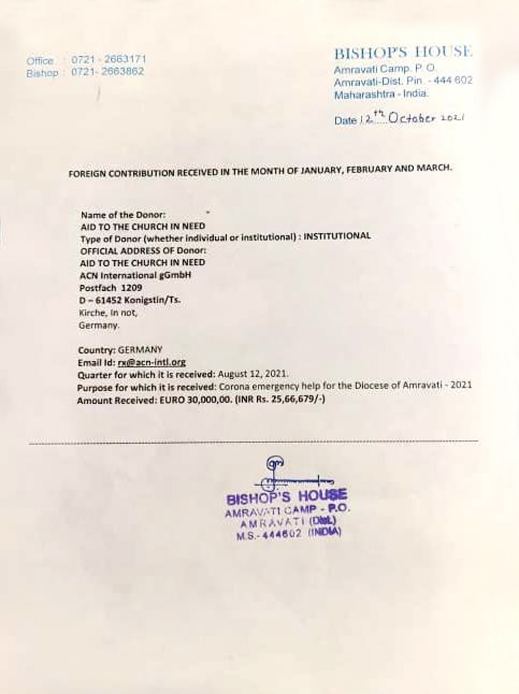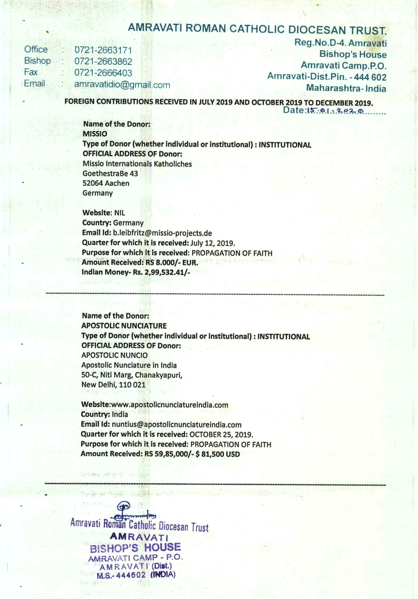 Foreign Contribution in July 2019 and Oct 2019 to Dec 2019 |